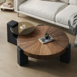 طاولة قهوة أوسلو الدائرية – خشب بقاعدة أسطوانية