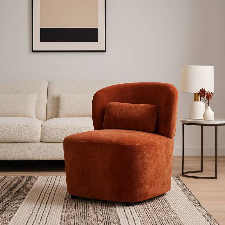 • الكرسي البرتقالي الفاخر: 90 × 90 × 90 سم، وبذلك يصبح قطعة ماستر تضيف راحة وأناقة ضمن طقم كنب مودرن متكامل.