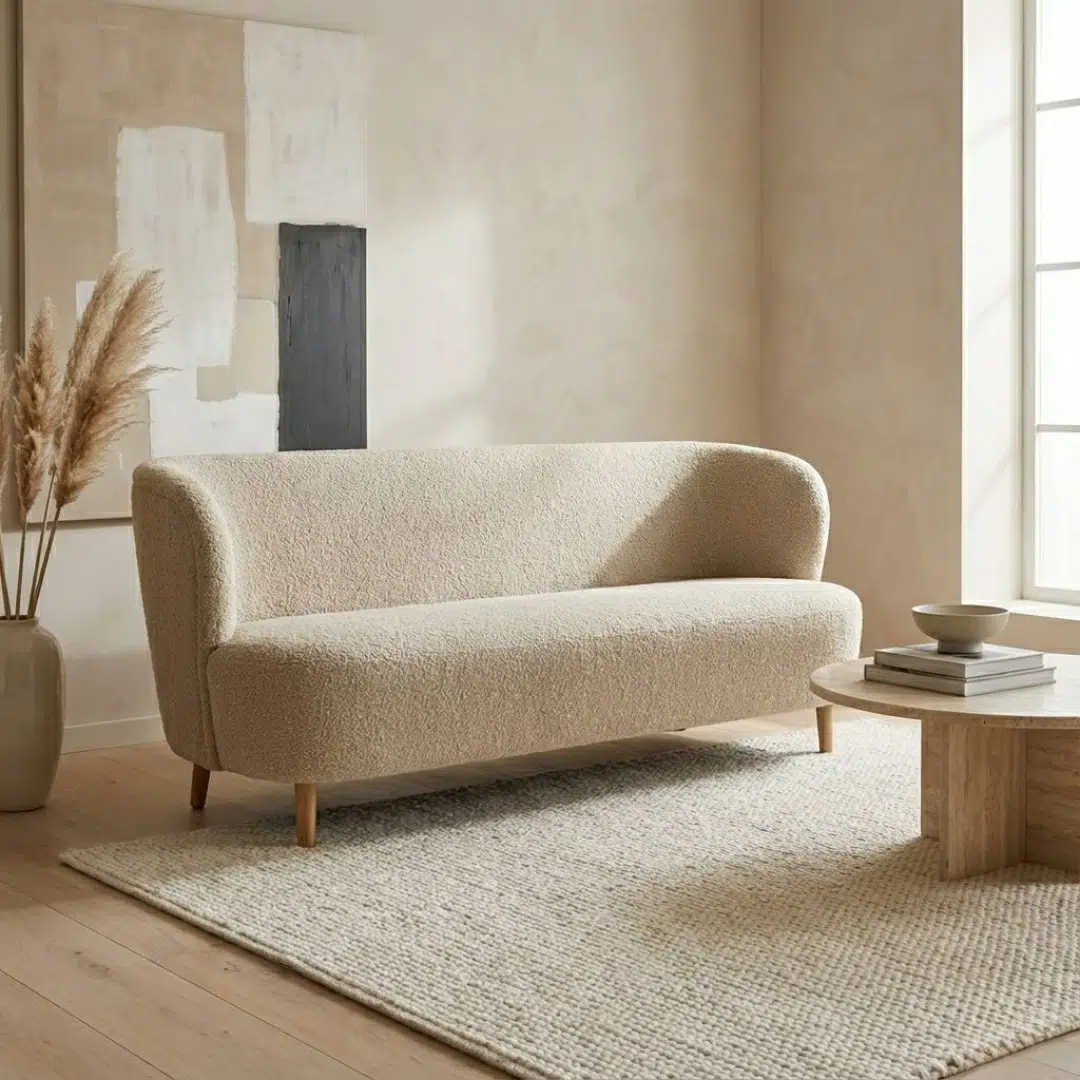 مكسوة بقماش فاخر من Dedar Milano Karakorum المصنوع من الصوف والقطن والفسكوز، مما يمنح ملمسًا ناعمًا وإحساسًا بالدفء.
