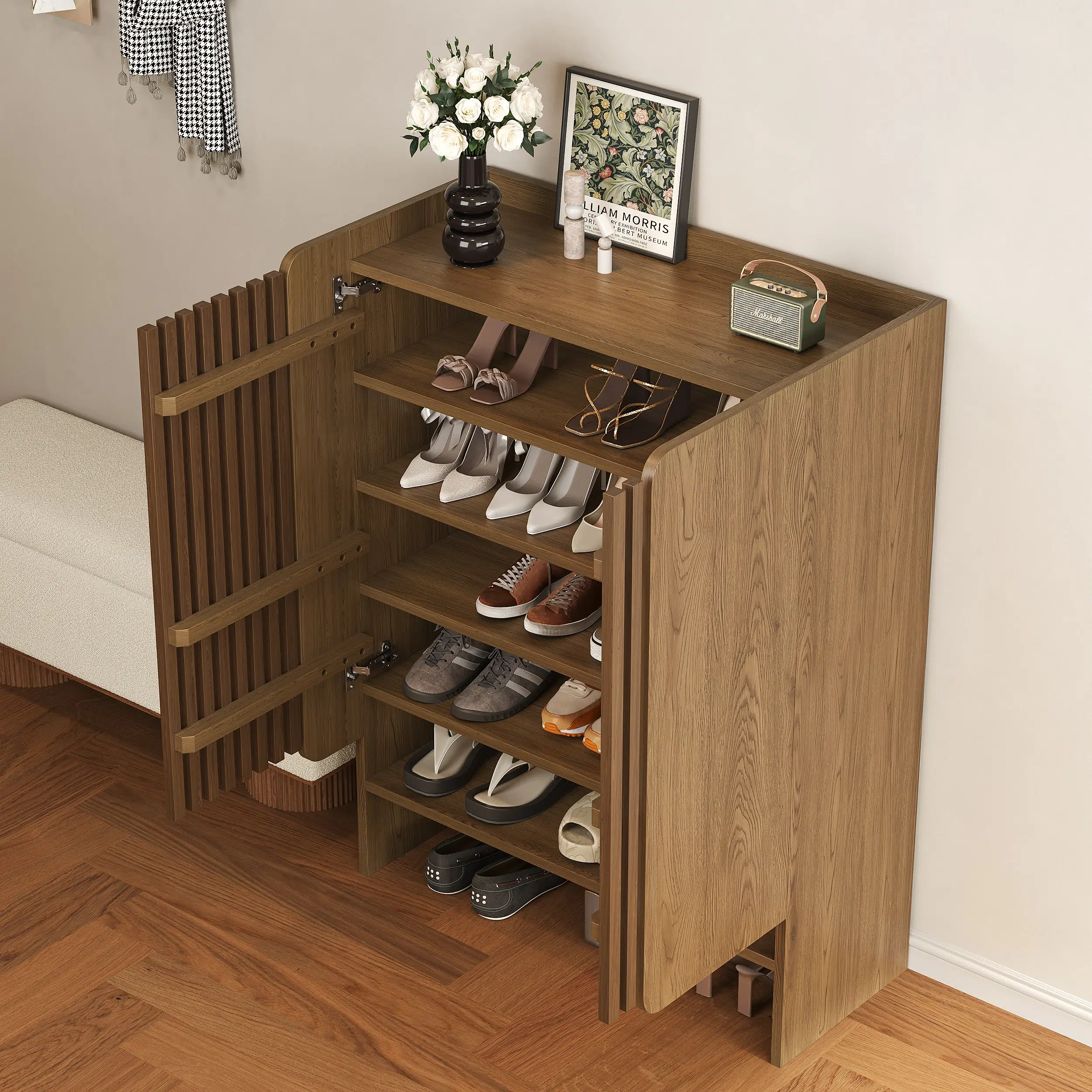 خزانة أحذية بالملمس الخشبي الصلب من الجوز 5 مستويات