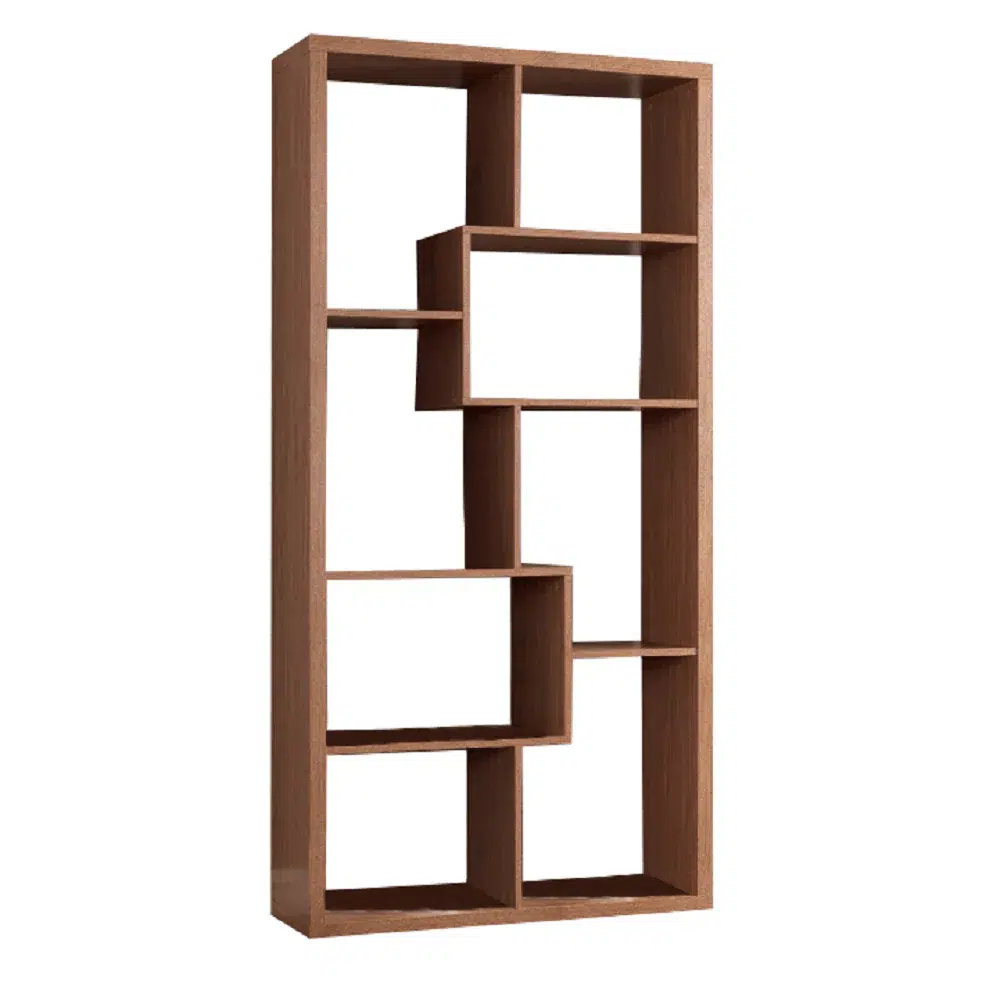 خزانة كتب ورفوف ديكور أليفا بتصميم مودرن ولون كرز أمريكي فاخر، رفوف هندسية أنيقة وجودة عالية تناسب المنازل والمكاتب العصرية.