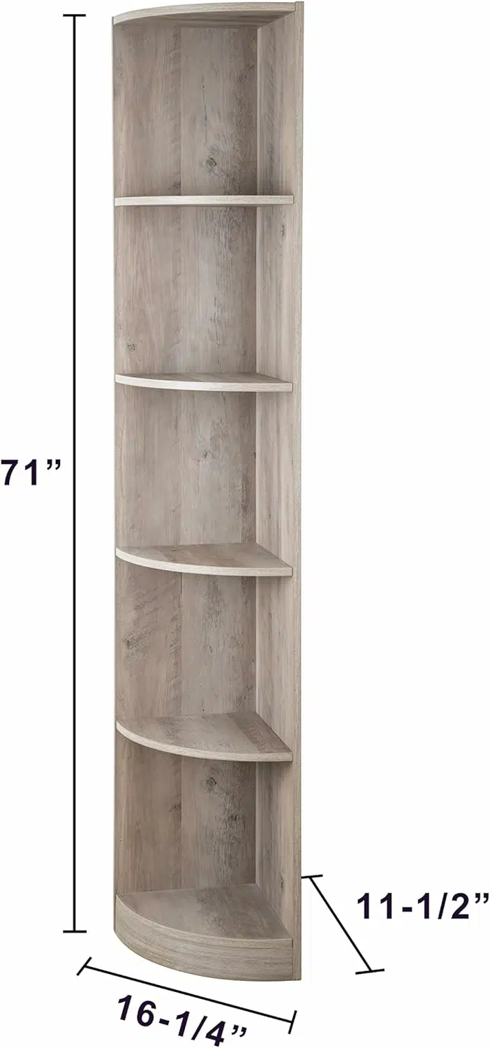 خزانة كتب زاوية فينتورا – رف تخزين عمودي مودرن 5 طبقات بلمسة خشب عتيق