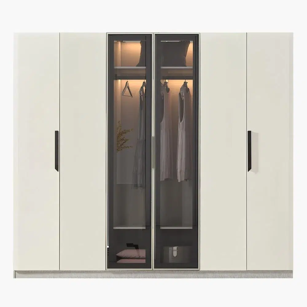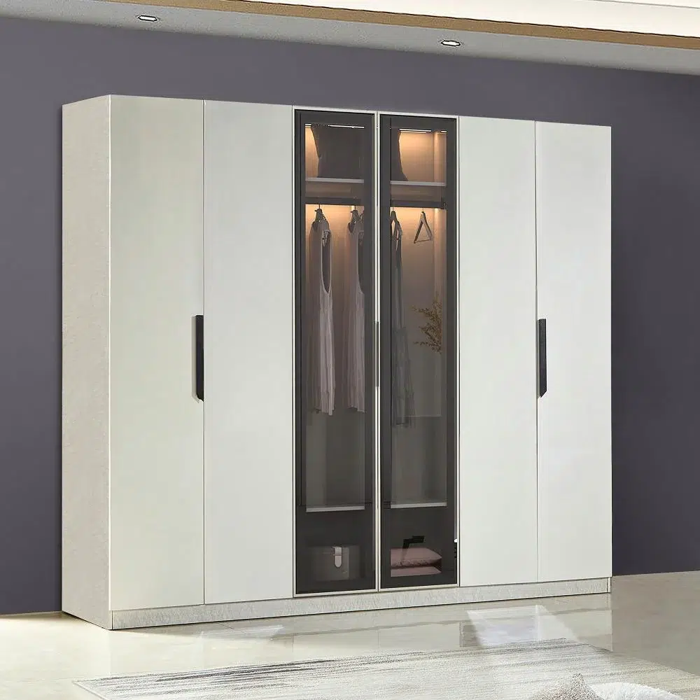 دولاب ملابس غراندورا خشب – 6 أبواب بزجاج شفاف