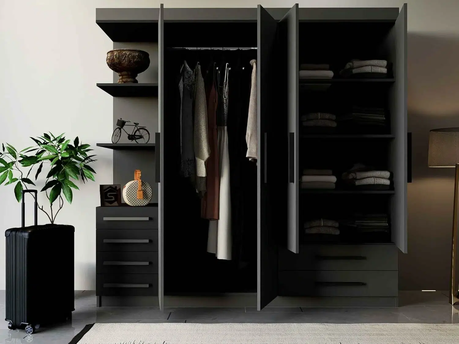 دولاب ملابس فاخر – 4 أبواب مع أرفف جانبية