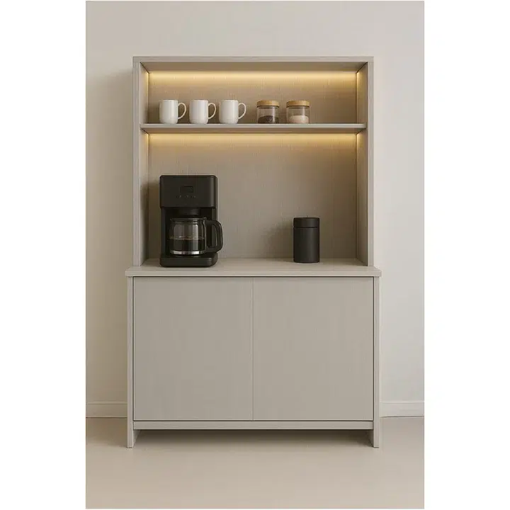 أضف لمسة من الأناقة العملية والعصرية إلى منزلك مع ركن قهوة تولتن من Lift Home، المصمم ليكون قطعة عملية ومتعددة الاستخدامات في المطبخ أو غرفة المعيشة. بفضل تصميمه العمودي مع رف علوي، يمكنك عرض ماكينة القهوة أو الإكسسوارات المنزلية بسهولة، مع وحدة تخزين أسفلية مغلقة لتنظيم الأدوات بعيدًا عن الفوضى.