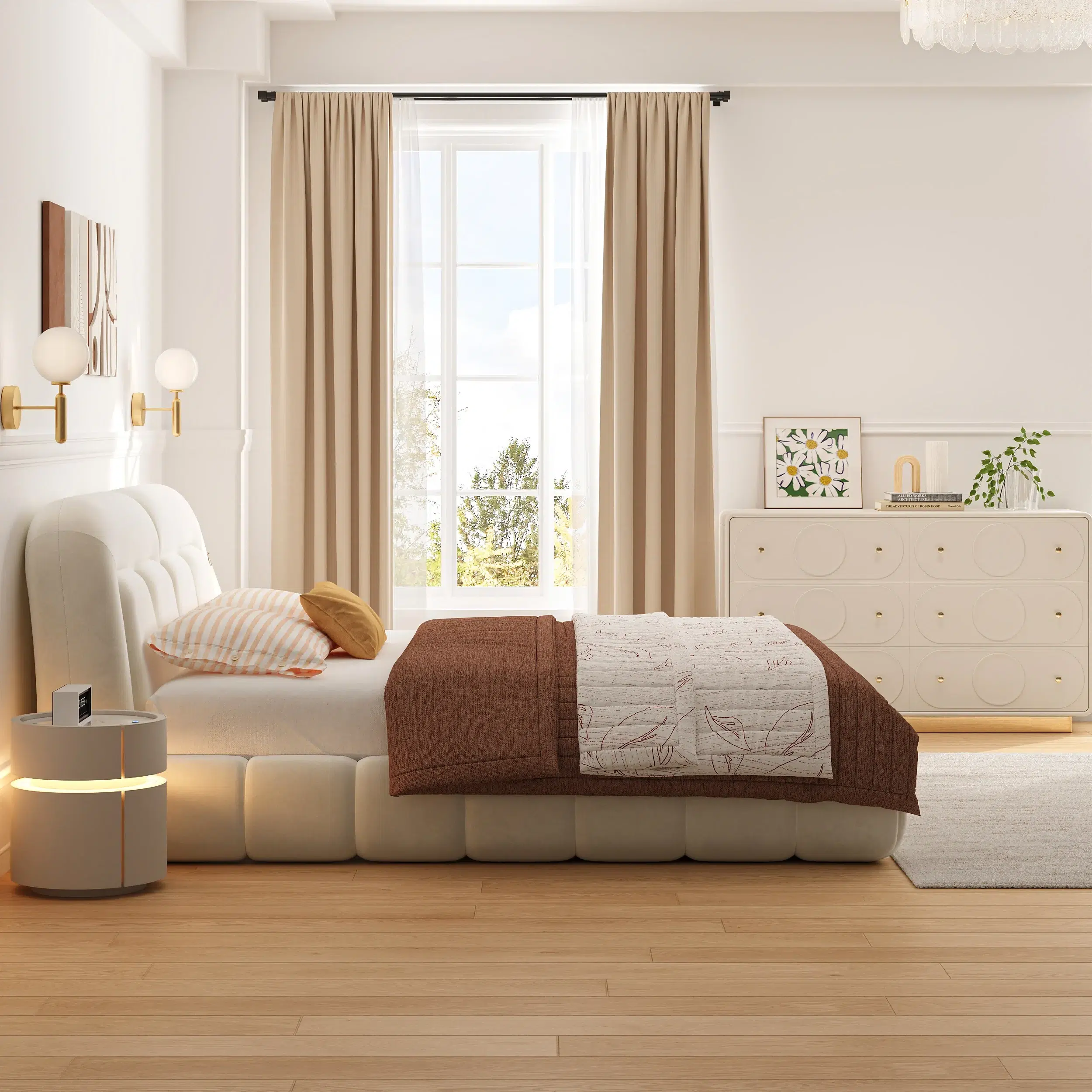 إذا كنت تبحث عن أثاث منزلي راقٍ يغيّر شكل غرفة نومك بالكامل، فإن سرير بابل بتنجيد بوكليه هو الاختيار المثالي. التنجيد البوكليه الأبيض الناعم يضيف إحساسًا بالفخامة والهدوء، بينما يمنحك لوح الرأس المخصر مظهرًا مودرن يناسب غرف المعيشة المفتوحة وغرف النوم العصرية.