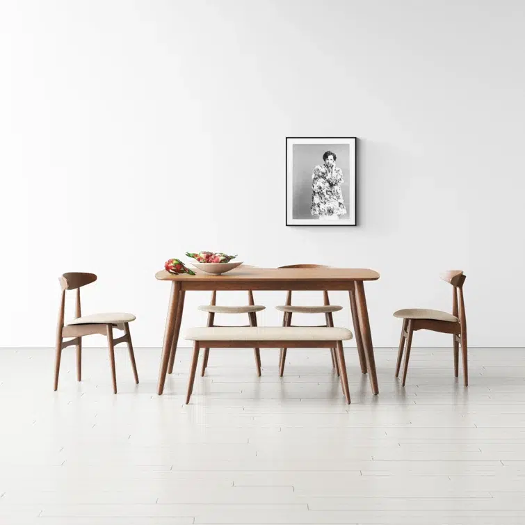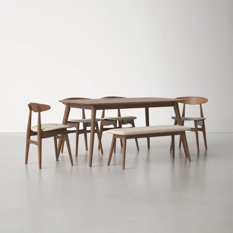 الطقم يحتوي على طاولة + 4 كراسي + بنش (مقعد طويل) ليستوعب 6 أشخاص براحة تامة، مما يجعله مثاليًا للوجبات اليومية والتجمعات العائلية.