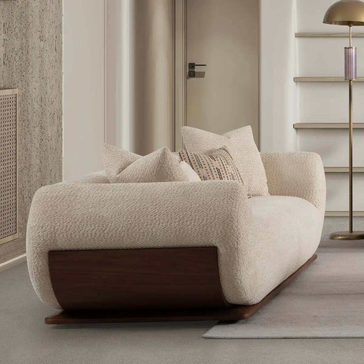 القماش المستخدم من نوع شانيل الفاخر يضيف ملمسًا ناعمًا ومظهرًا أنيقًا يعكس الذوق الراقي، إلى جانب متانته التي تجعله مناسبًا للاستخدام اليومي. كما أن التصميم المنخفض نسبيًا يمنح الطقم طابعًا عصريًا حديثًا يتماشى مع الديكورات المودرن والبسيطة.
