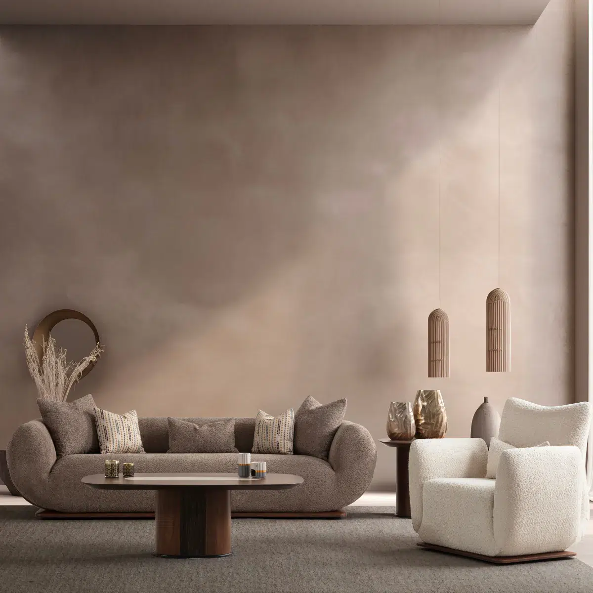 تم تصميم الكنبة والكرسي بعناية لتحقيق أقصى درجات الراحة، حيث يوفر المقعد العميق ومسند الظهر المريح تجربة جلوس مثالية للاسترخاء بعد يوم طويل أو للاستمتاع بجلسات عائلية هادئة. كما أن التوازن بين الأبعاد والتصميم يمنح إحساسًا بالاتساع والتنظيم داخل المكان.