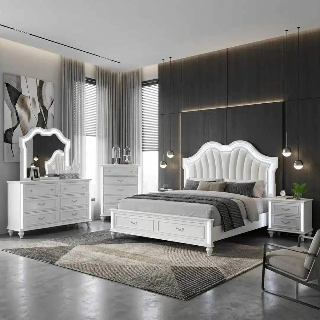 جدّد غرفة نومك مع غرفة نوم تولين بتصميم عصري أنيق يجمع بين الجمال والعملية. طلاء أبيض نقي يمنح إحساسًا بالاتساع، مع رأس سرير منجد بجلد (PU) عالي الجودة، وأدراج تخزين ذكية مدمجة في قاعدة السرير لتوفير مساحة إضافية دون فوضى.