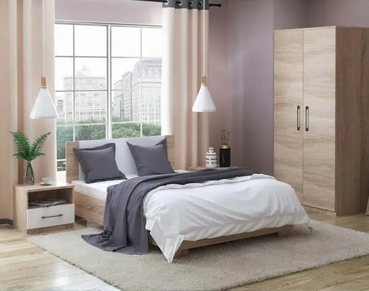 تتكوّن الغرفة من سرير عملي بمقاس مناسب، دولاب واسع للتخزين، و2 كومود جانبي لتسهيل ترتيب الأغراض الشخصية. تم تصنيع جميع القطع من خشب سويدي عالي الجودة مع الكونتر، ما يمنح الغرفة قوة وثباتًا عاليين وقدرة على تحمّل الاستخدام اليومي لفترات طويلة، مع الحفاظ على المظهر العصري الأنيق.
