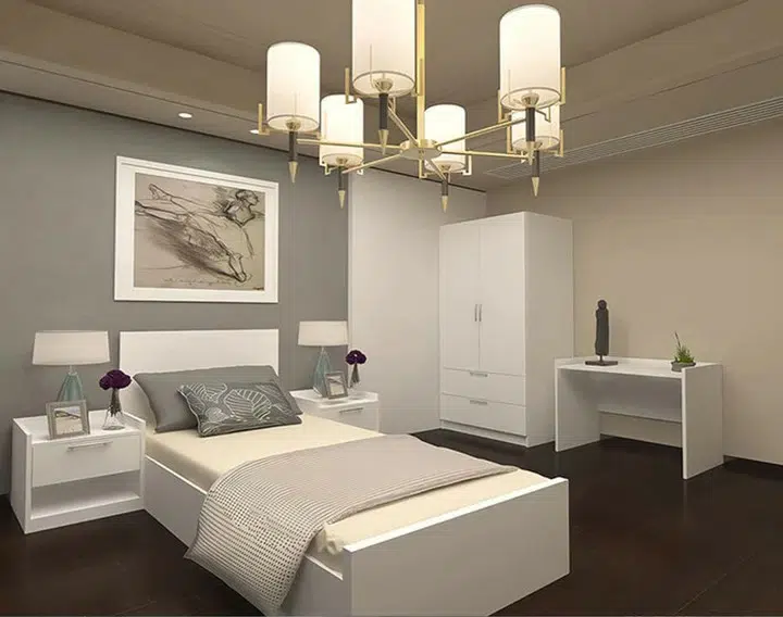 غرفة نوم شباب تلتن مودرن – 5 قطع (سرير + دولاب + 2 كومود + مكتب)