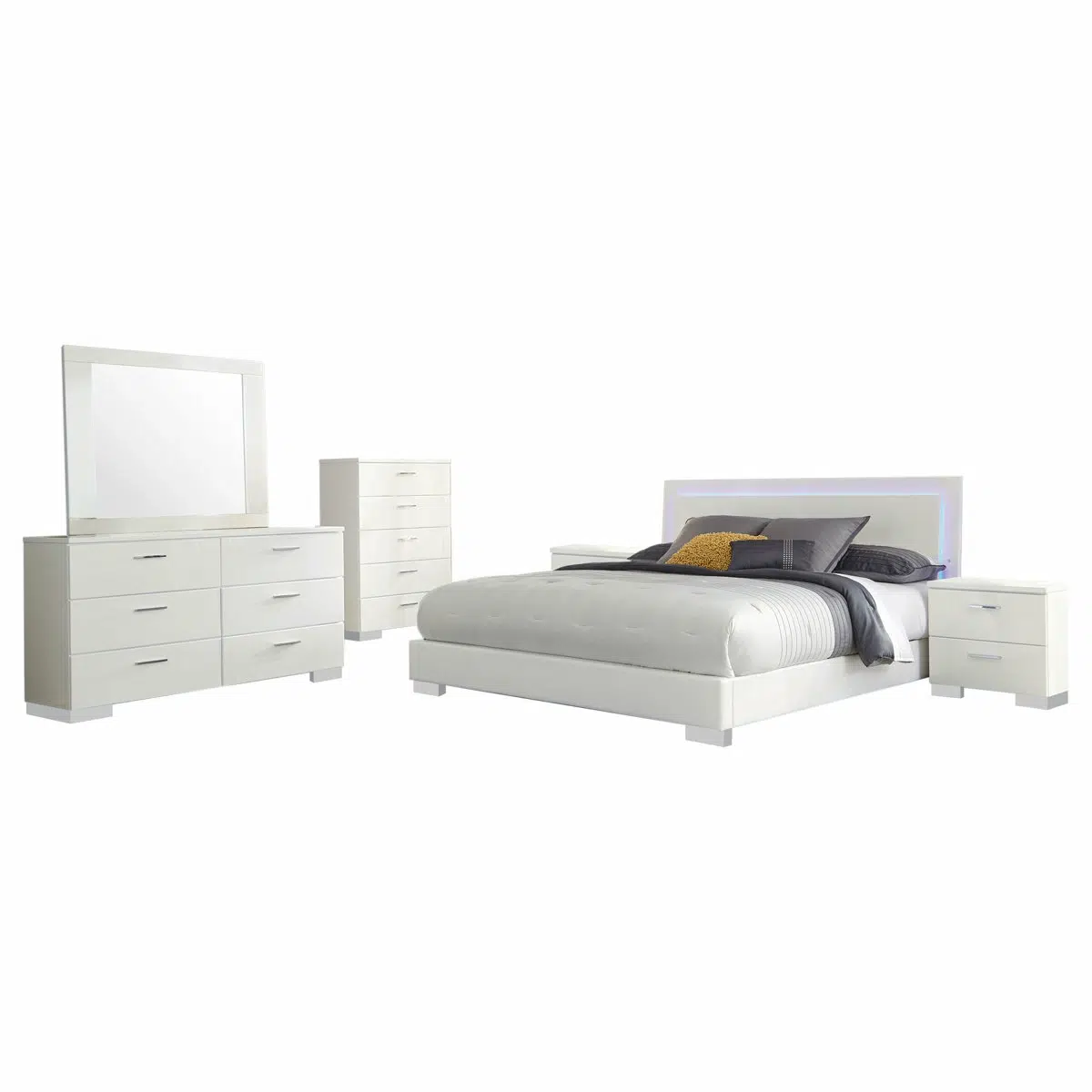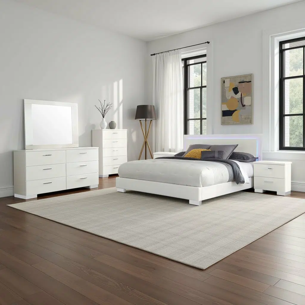 غرفة نوم كاملة سلني – تصميم مودرن هاي جلوس أبيض مع إضاءة LED – 5 قطع