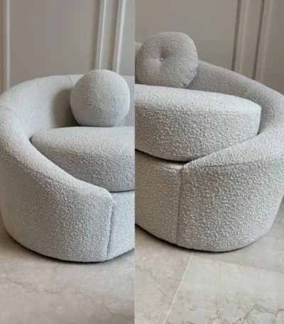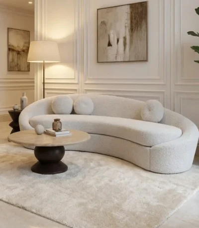 كنبة لونا منحنية فاخرة – قماش بوكليه تصميم عصري